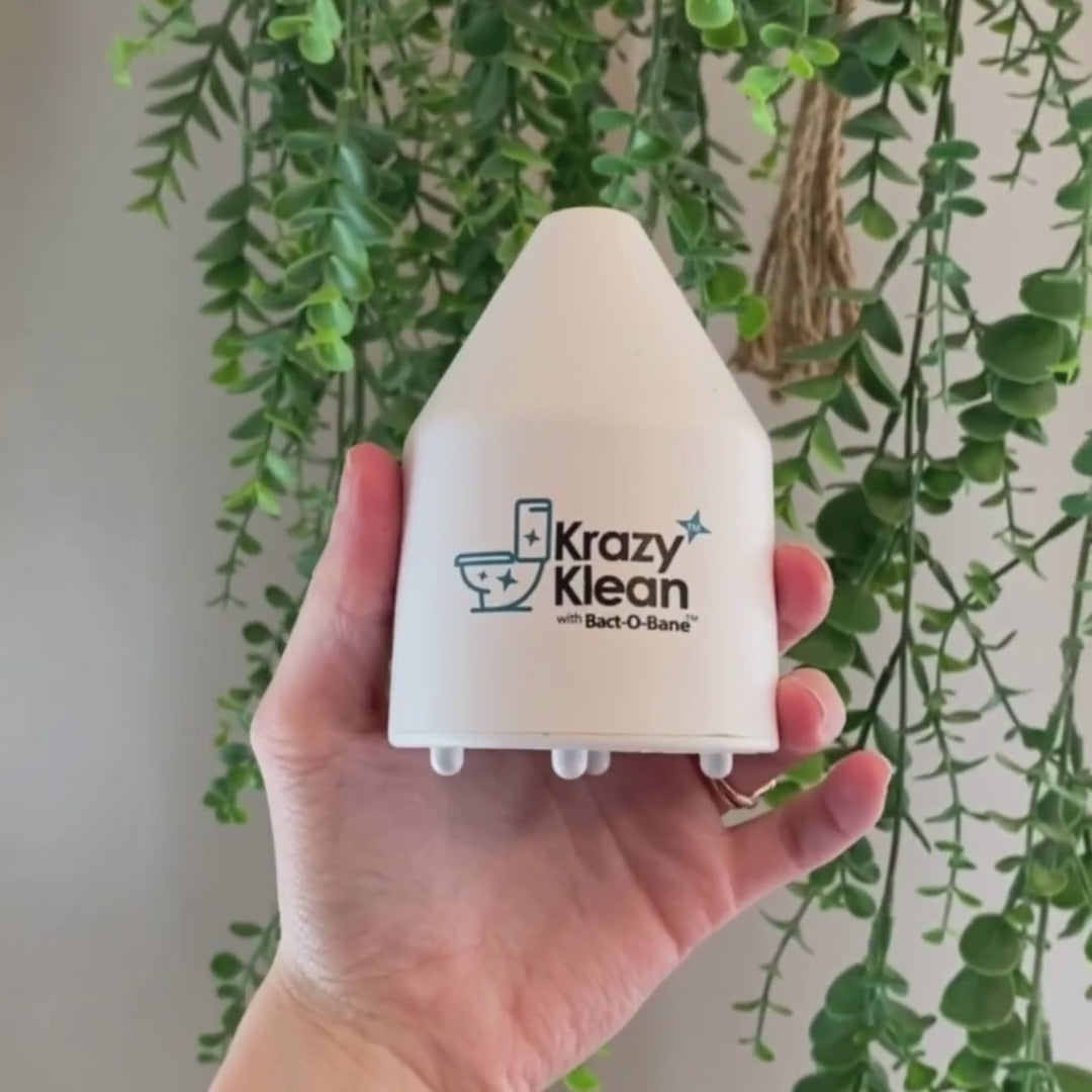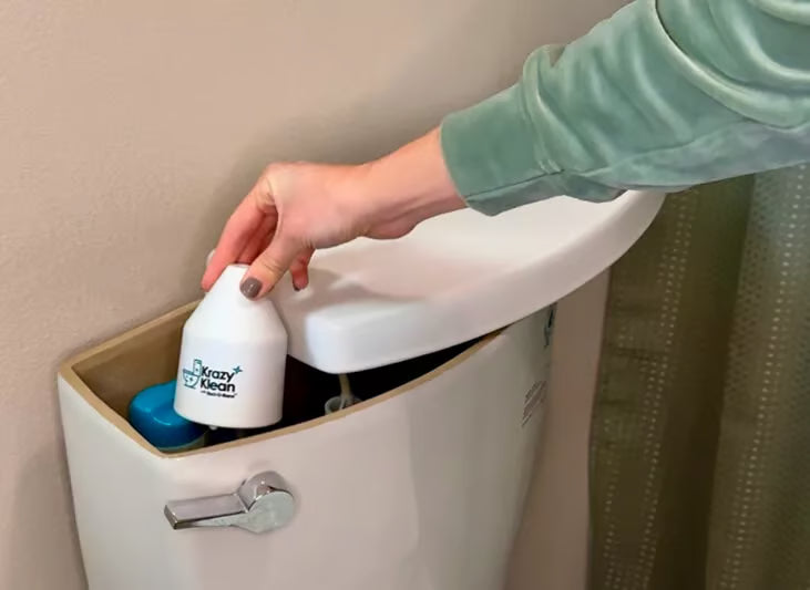 Krazy Klean uses magnetic fields to stop minerals from sticking to toilet bowls. Krazy Klean accomplishes this by altering the structure of minerals in the water.